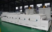 2、外形尺寸(約):總長7.6米*高1.5米*寬2.3米;輸送面離地面高0.84米±0.025米可調節(jié);進料區(qū)2米,加熱段5米(分三段),出料區(qū)0.6米;